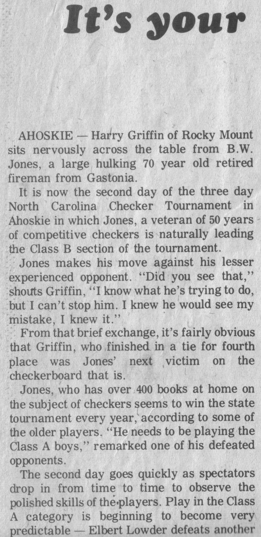 July 11, 1979 Sanford News-Herald - It's your move, king me, triple jump: that's checkers folks"